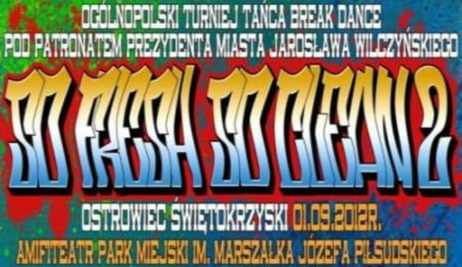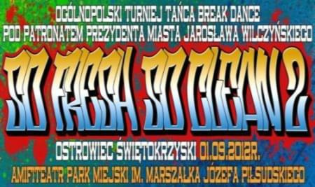 Już po raz drugi do Ostrowca Świętokrzyskiego przyjadą najlepsi tancerze breakdance z naszego kraju. II Ogólnopolski Turniej Tańca Breakdance "So Fresh So Clean" odbędzie się w ostatnią sobotę wakacji 1 września w ostrowieckim amfiteatrze. Początek o 15.30. Zmagania b-boyów poprzedzą warsztaty, które w sali baletowej na trzecim piętrze budynku kina "Etiuda" od 11.00 do 14.00 poprowadzą Skoora i Kamil.
