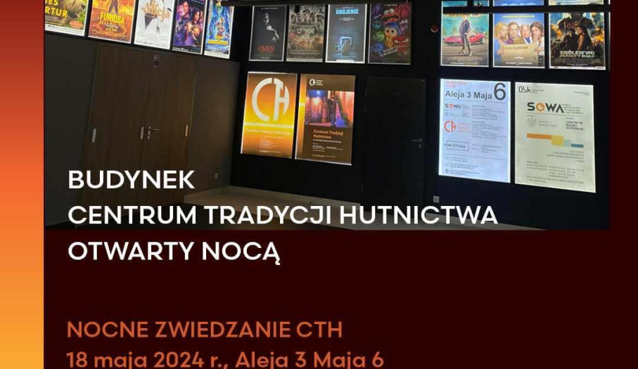 W ramach NOCY MUZEÓW zapraszamy na nocne zwiedzanie Centrum Tradycji Hutnictwa w Ostrowcu Świętokrzyskim (budynku przy ul. Aleja 3 Maja 6).